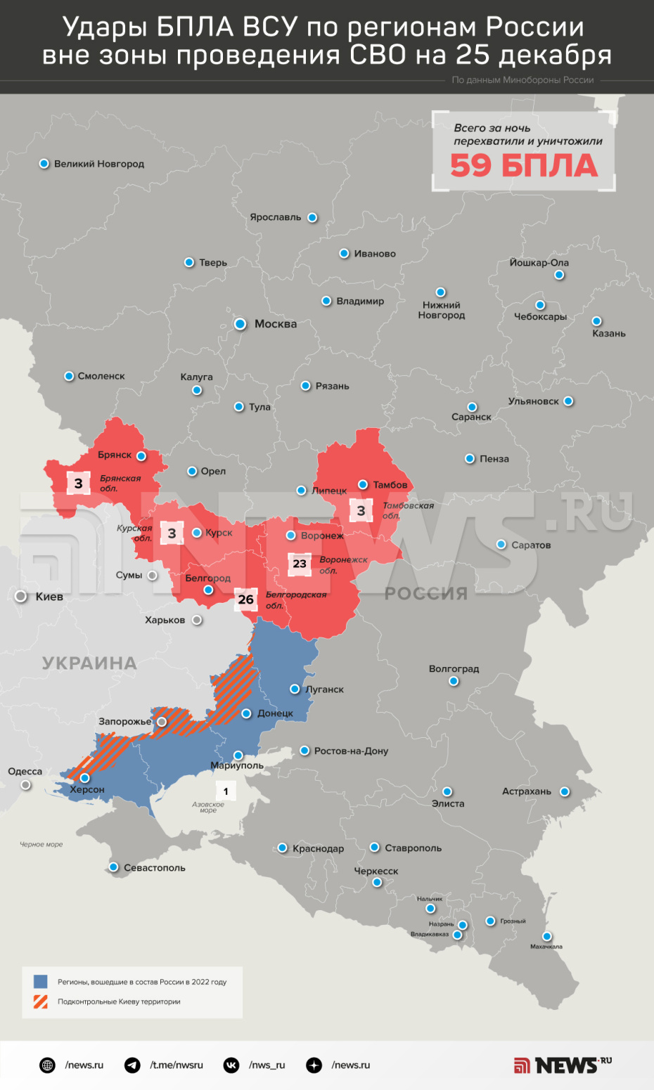 Карта атак БПЛА ВСУ на регионы РФ 25 декабря: инфографика