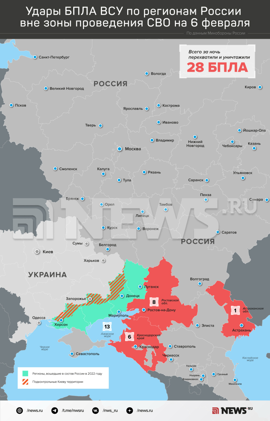 Карта атак БПЛА ВСУ на регионы РФ 6 февраля: инфографика