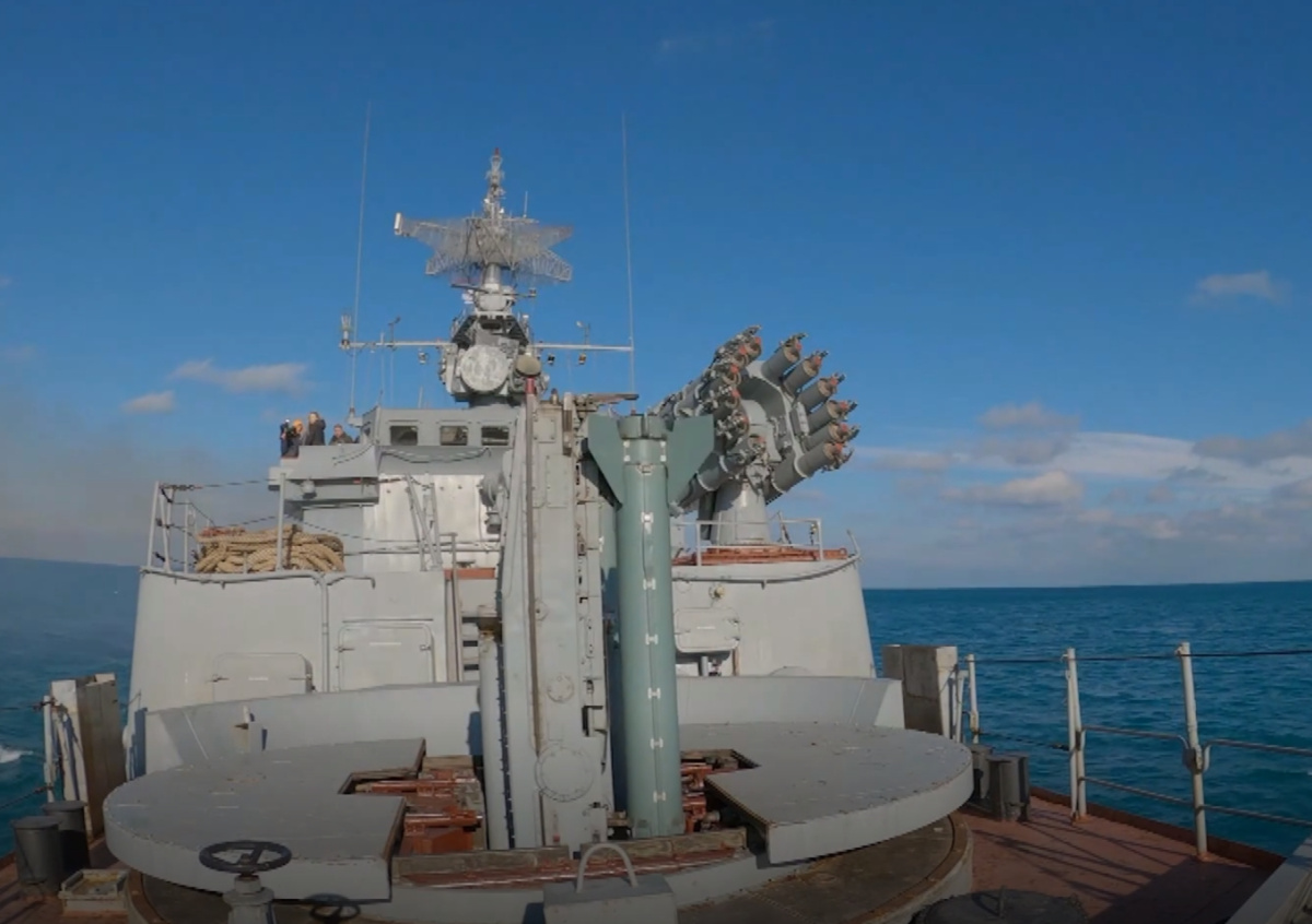 На кадрах, опубликованных Министерством обороны РФ, можно увидеть работу ЗРК «Оса». Также на них показано применение других корабельных вооружений.