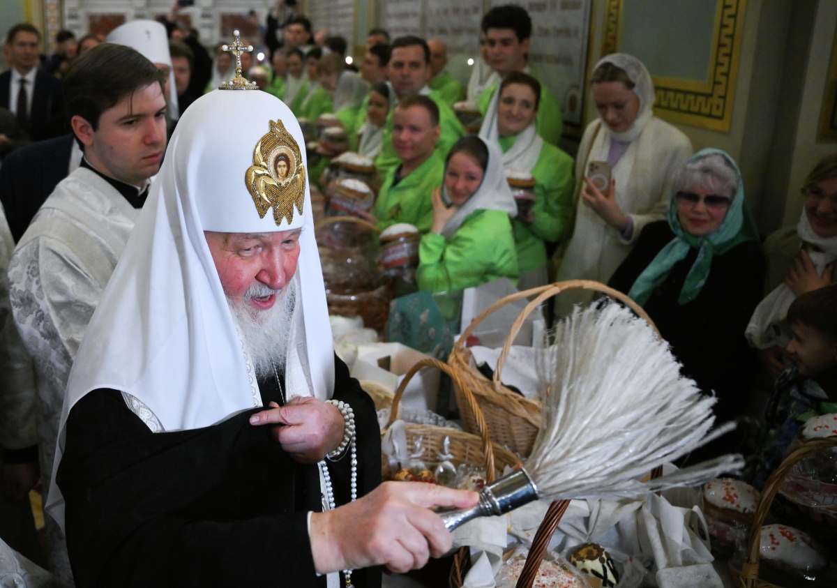 Патриарх Московский и всея Руси Кирилл освящает куличи после божественной литургии в храме Христа Спасителя в Москве