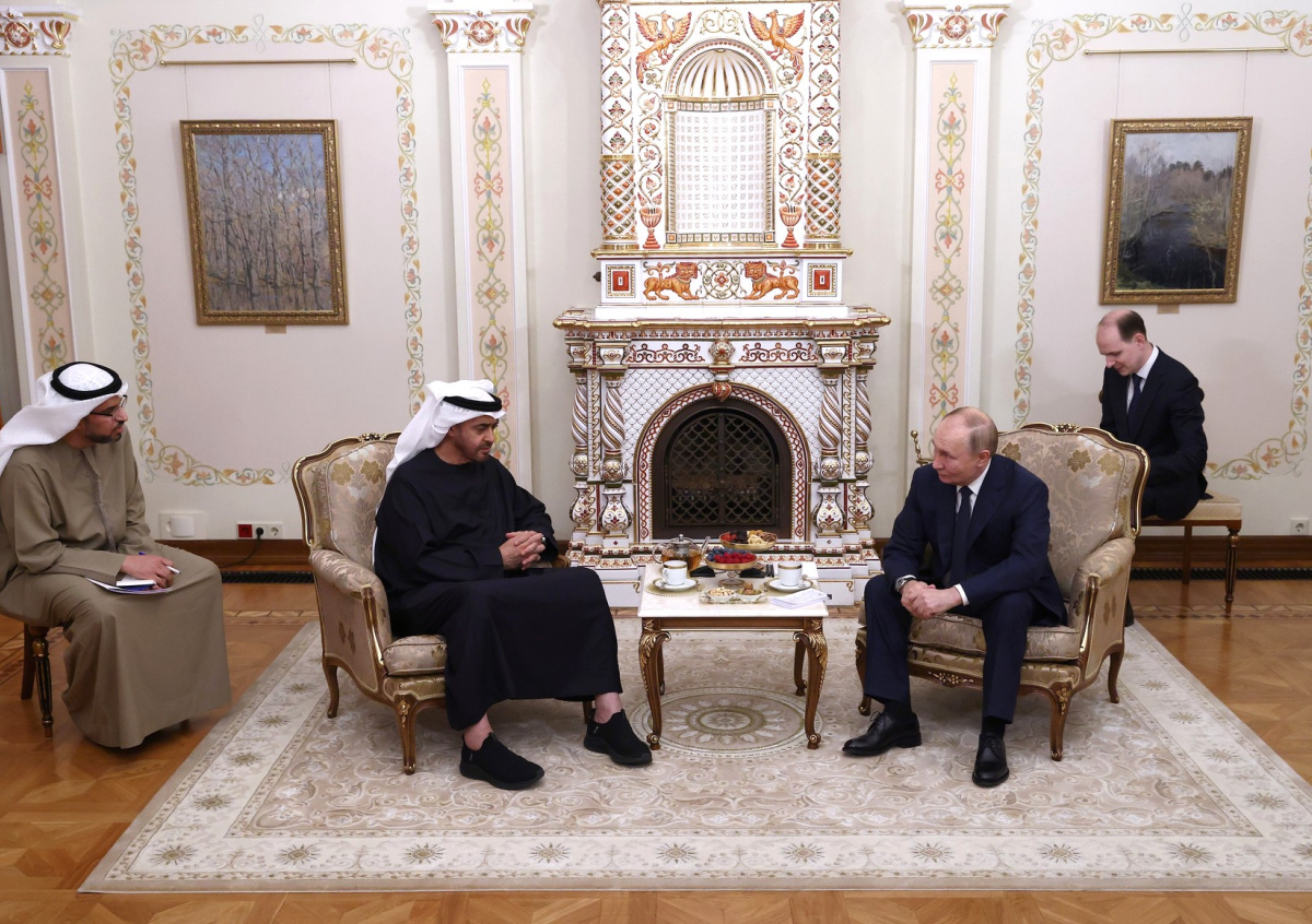 Президент ОАЭ Мухаммед бен Заид Аль Нахайян надел кроссовки на неформальную встречу с российским коллегой Владимиром Путиным, свидетельствуют кадры, опубликованные пресс-службой Кремля. Политики встретились в воскресенье, 20 октября, в подмосковной резиденции Ново-Огарево.