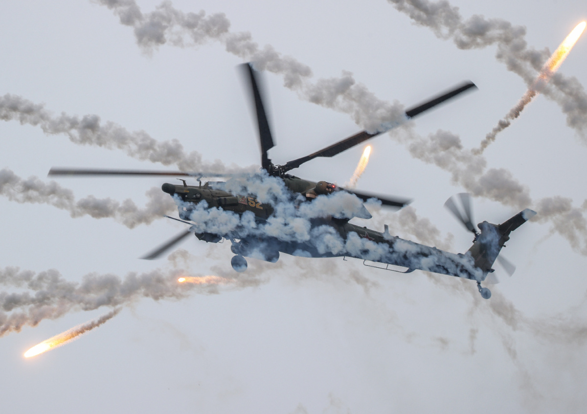 Экипаж вертолета Ми-28НМ нанес удар по скоплению техники и живой силы ВСУ, сообщили в Минобороны России. По данным ведомства, атака была совершена в приграничном районе Курской области.
