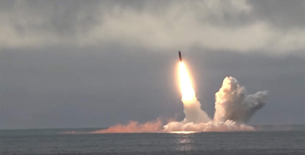 Видеосъёмку пуска баллистической ракеты «Булава» с подводной атомной лодки «Юрий Долгорукий» опубликовало Минобороны РФ на сайте ведомства.