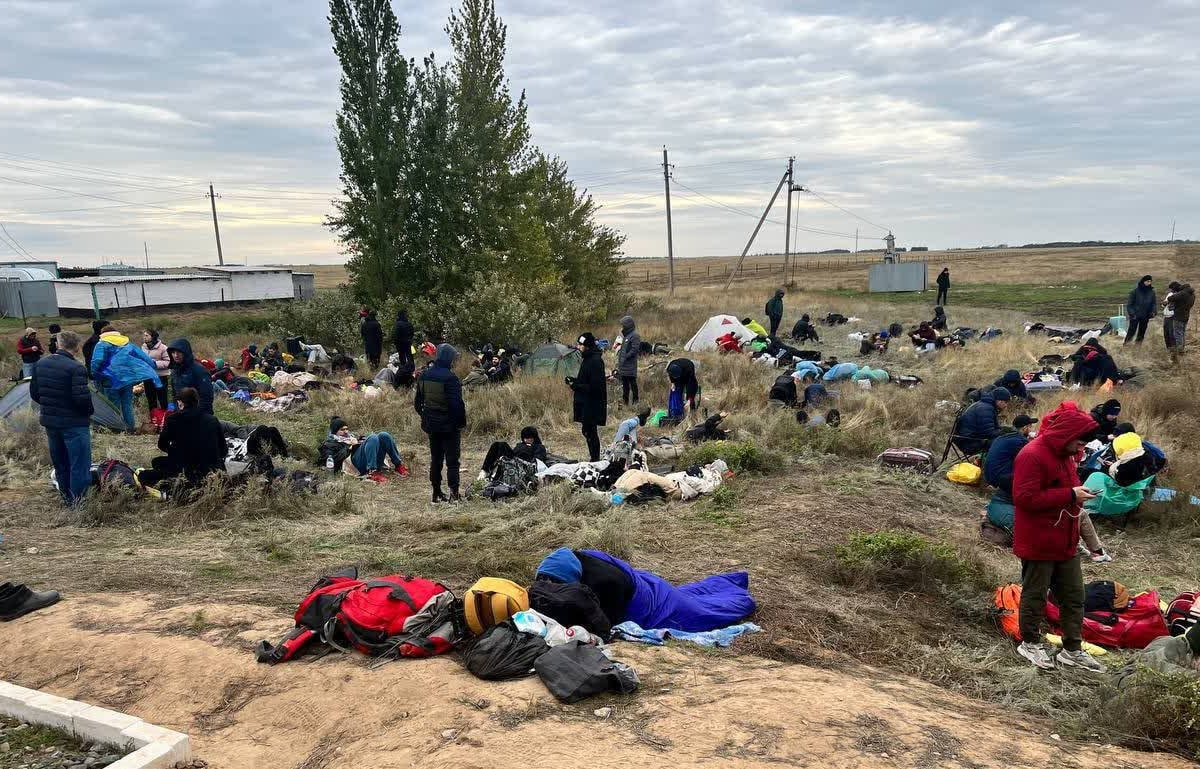 На границе Оренбургской области с Казахстаном люди строят хижины, жгут костры и готовят еду в казанах, сообщает телеведущая и журналистка Ксения Собчак в своем Telegram-канале. Судя по кадрам, снятым очевидцами, вынужденные сутками ожидать очереди на пропускном пункте помогают и поддерживают друг друга.