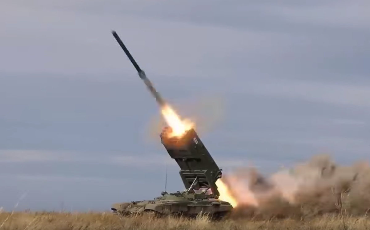 Telegram-канал «Операция Z: Военкоры Русской Весны» опубликовал видео работы экипажа тяжелых огнеметных систем ТОС-1А «Солнцепек» на Краснолиманском направлении в зоне специальной военной операции России на Украине. По словам авторов канала, расчеты нанесли мощный удар по позициям ВСУ и накрыли личный состав противника, «оставив лишь пепел».
