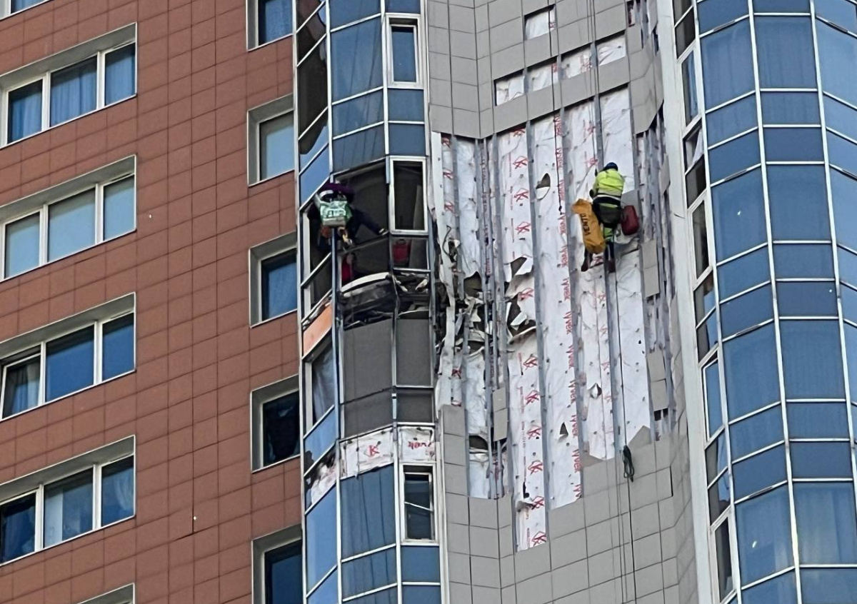 Часть БПЛА влетела в верхние этажи дома. Из-за этого фасад здания получил повреждения. Помимо этого, у нескольких квартир разрушено остекление. Сотрудники полиции и МЧС оцепили территорию рядом с поврежденным домом.