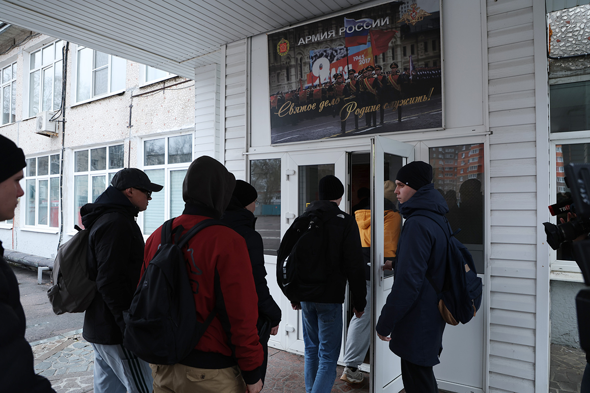 Московская область. Балашиха. Призывники на сборном пункте в военном комиссариате в первый день отправки в воинские части РФ