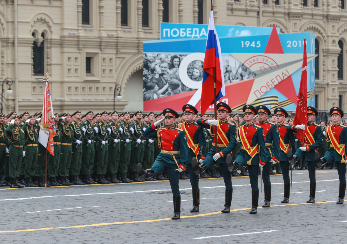 Исторический Парад Победы в честь разгрома фашистской Германии Советским Союзом в Великой Отечественной войне состоялся 24 июня 1945 года на Красной площади в Москве. Мероприятие принимал маршал Георгий Жуков, а командовал войсками маршал Константин Рокоссовский. В торжественное шествии участвовали около 35 тысяч человек. Была проведена церемония повержения знамён и штандартов разгромленных вражеских войск к мавзолею. Впоследствии, во времена существования Советского Союза, парад Победы проводили только в юбилейные годы — 1965, 1985 и 1990. Однако с 1995-го ежегодный парад на Красной площади стал традицией.
