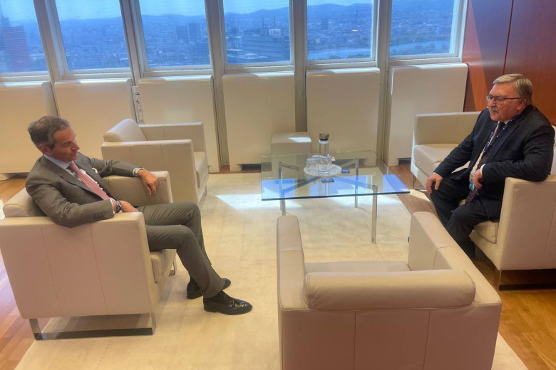 Постоянный представитель России при международных организациях в Вене Михаил Ульянов рассказал в своем Telegram-канале, что провел рабочие консультации с генеральным директором Международного агентства по атомной энергии (МАГАТЭ) Рафаэлем Гросси. В ходе беседы стороны обменялись оценками по ситуациям на Украине и в Иране.