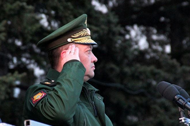 На торжественной церемонии Чайко принял штандарт командующего войсками от генерал-полковника Геннадия Жидко.