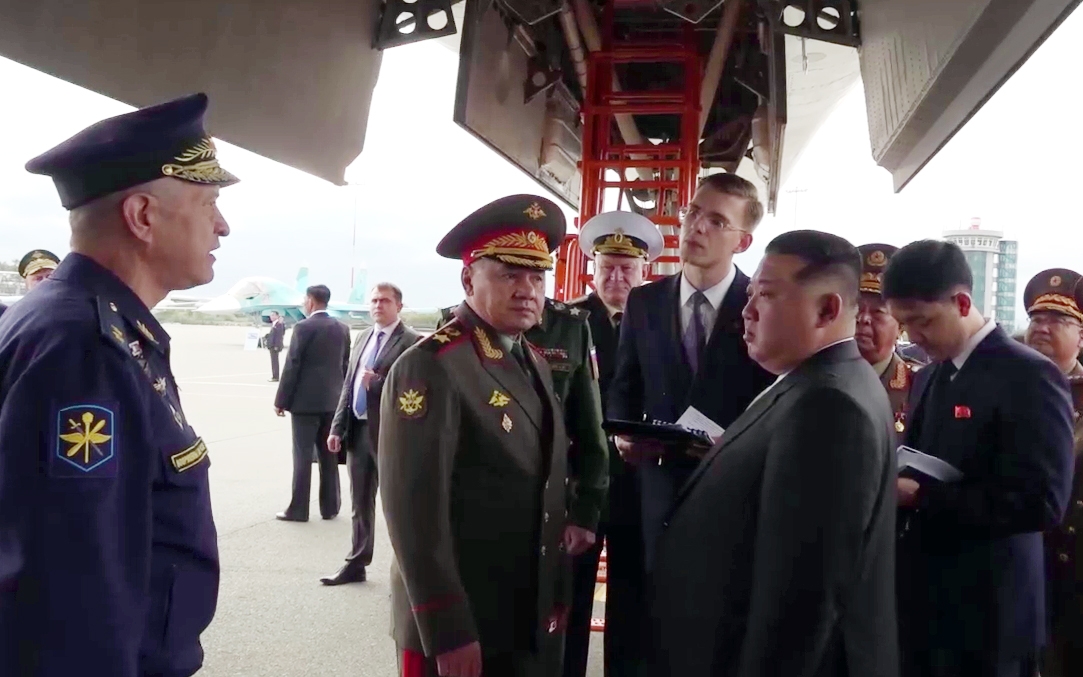 На аэродроме Кневичи во Владивостоке лидера КНДР встретил Шойгу. Гостю представили три самолета стратегической авиации Воздушно-космических сил (ВКС) РФ: Ту-160, Ту-95МС и Ту-22М3. Во время доклада командиры экипажей уделили особое внимание летно-техническим характеристикам самолетов и возможностям вооружения. Ким Чен Ыну также был представлен ракетный комплекс «Кинжал» на ракетоносце МиГ-31И. Он не имеет аналогов в мире и уже показал свою высокую эффективность в бою.