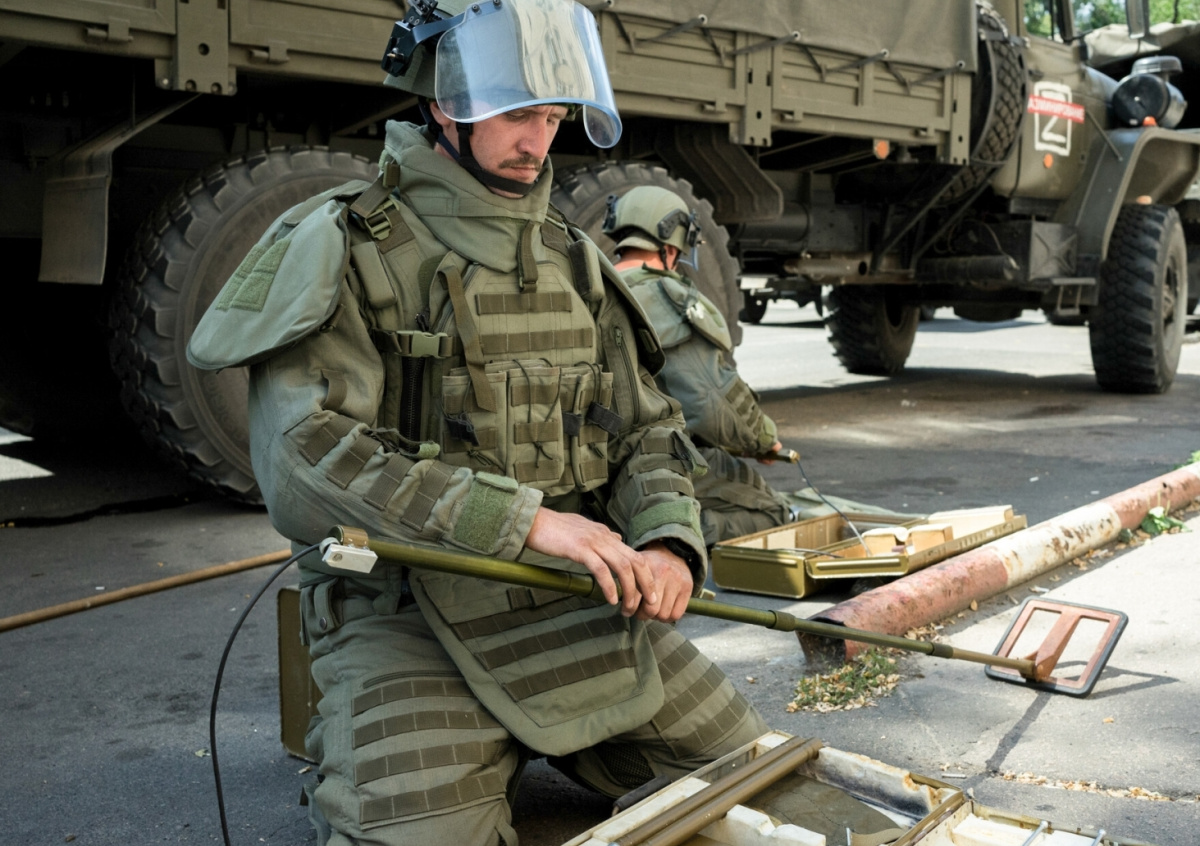 По его словам, российские инженерные войска не стоят на месте и применяют новые средства поиска и обезвреживания мин. Он уточнил, что саперы защищены «от пят до макушки» только в российских войсках.