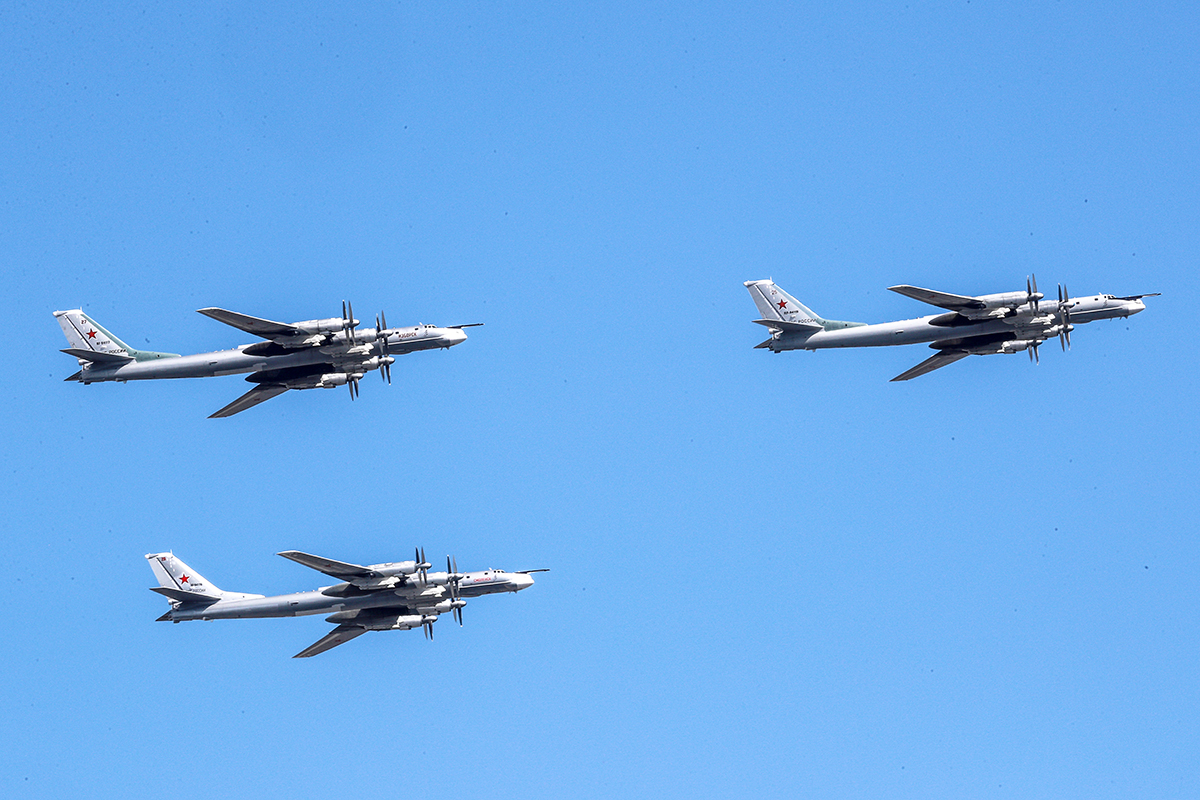 Россия подняла в небо девять стратегических бомбардировщиков Ту-95МС и три стратегических ракетоносца Ту-160, передает Telegram-канал «Военный осведомитель» со ссылкой на мониторинговые каналы. По его данным, борты находятся на точках пуска крылатых ракет или на пути к ним. В Минобороны России соответствующую информацию еще не комментировали.