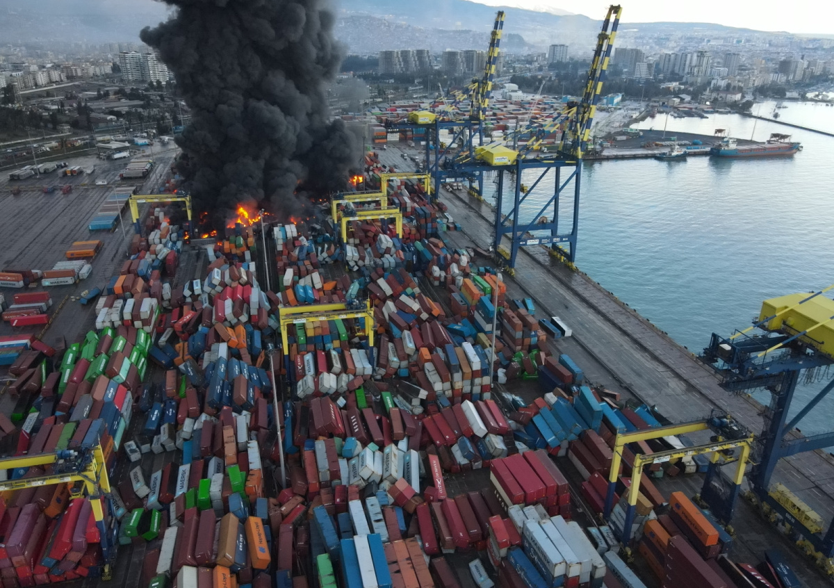 6 февраля сильный пожар вспыхнул в порту Искендерун на юге Турции после землетрясения. В морской гавани загорелись грузовые контейнеры. Над портом на много метров вверх поднимался черный густой дым.