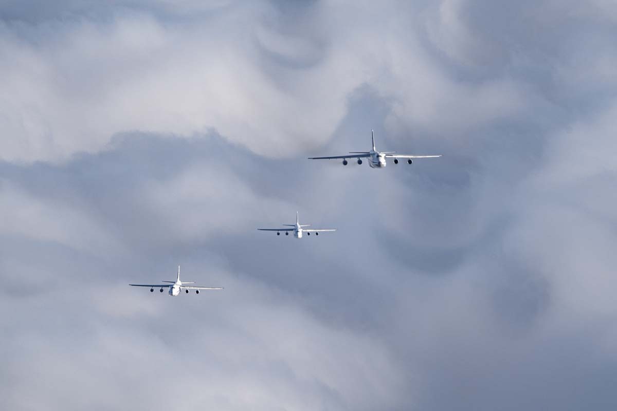 Шесть военно-транспортных сверхтяжёлых самолётов Ан-124-100 «Руслан» одновременно поднялись в небо в рамках совместной тренировки экипажей Сещинского и Тверского авиационных полков. Такое произошло впервые в истории России, сообщили в Министерстве обороны.