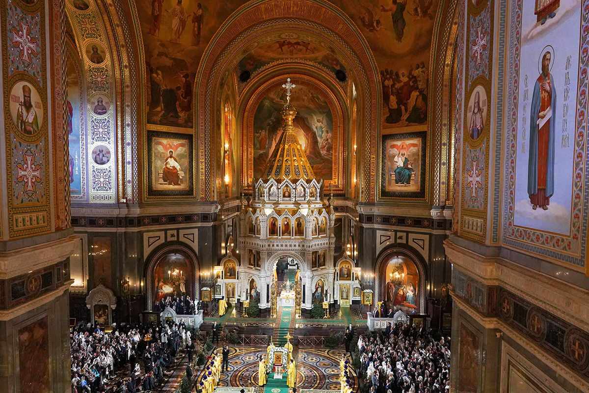 Ночное рождественское богослужение в храме Христа Спасителя в Москве