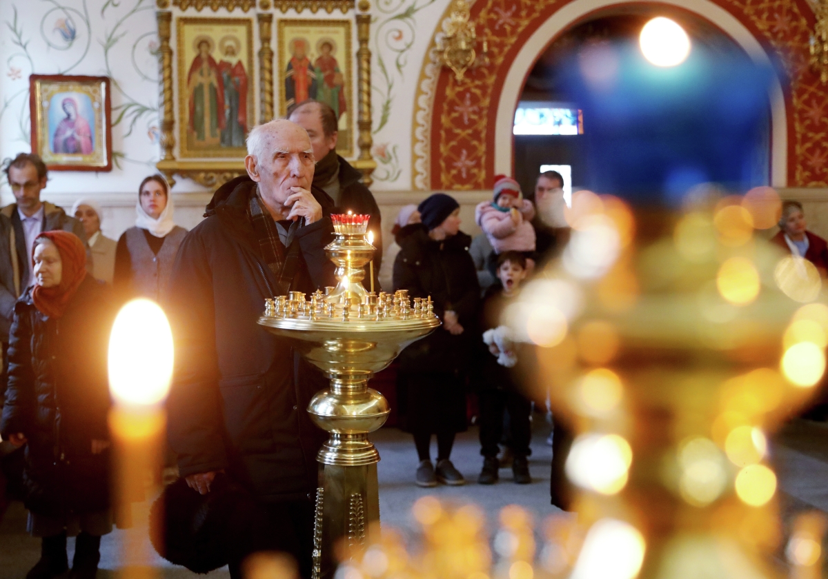 Верующие во время рождественского богослужения в Вознесенском кафедральном соборе в Новосибирске