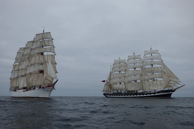 Парусники «Седов» и «Крузенштерн» отправились в кругосветное плавание после того, как их в субботу, 7 декабря, задержал шторм в порту Калининграда.