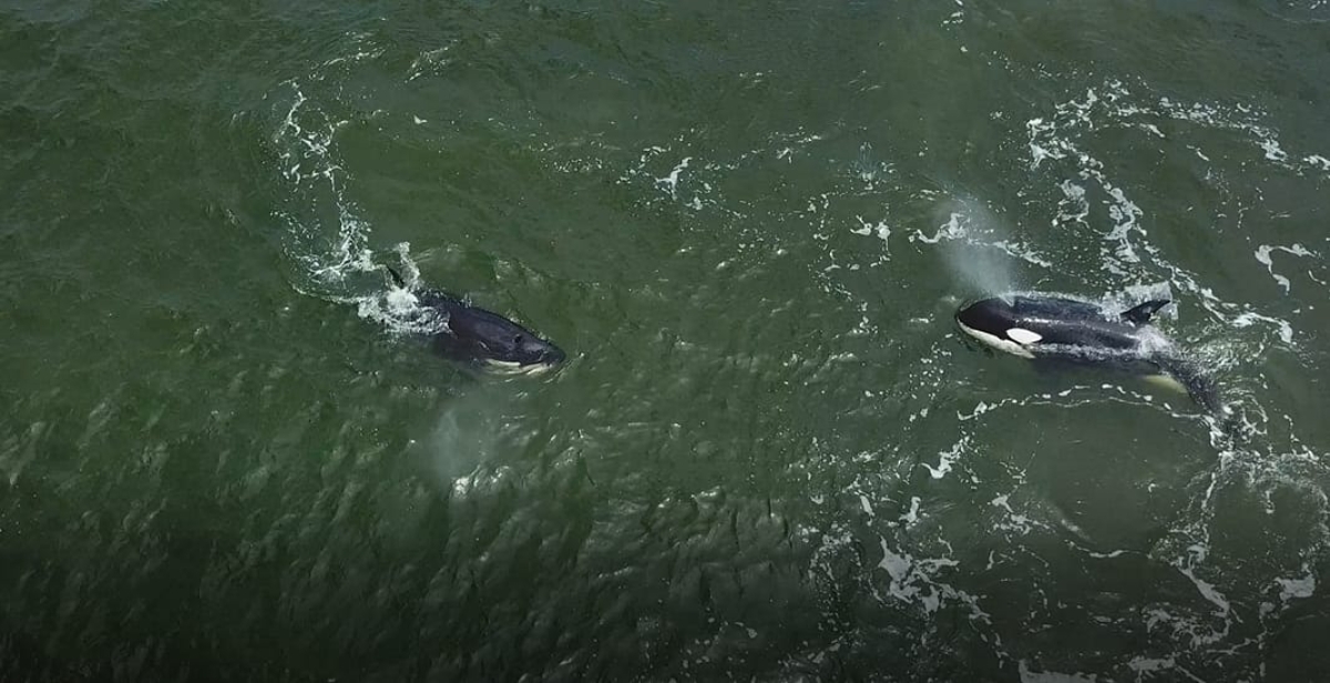 Семья сахалинских косаток попала на видео