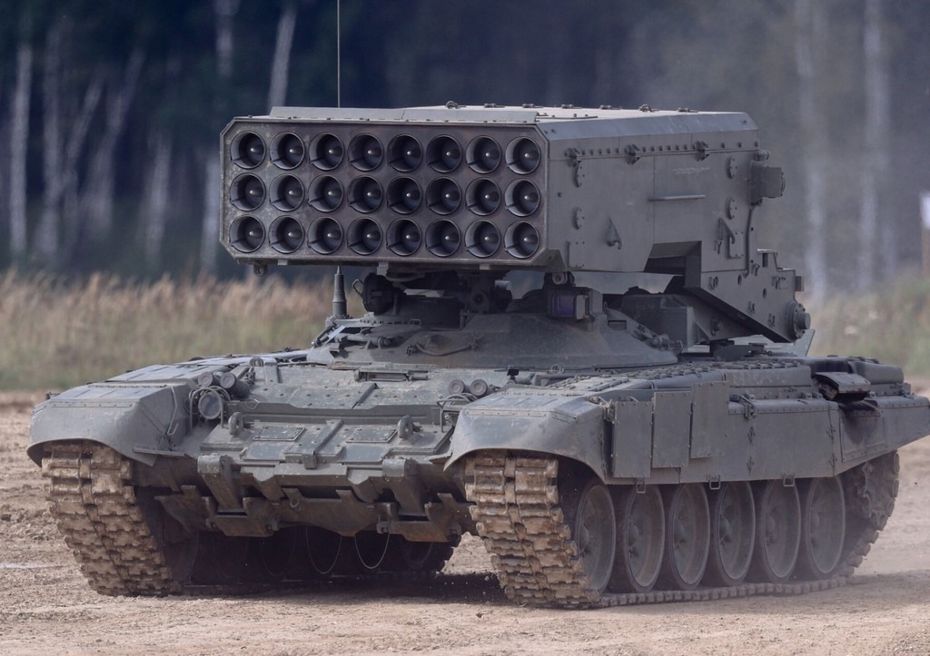 РИА Новости опубликовало уникальные кадры использования тяжелой огнеметной системы ТОС-1А «Солнцепек» в зоне спецоперации. «Солнцепек» работал совместно с БМ-21 «Град» для поражения огневых точек и мест дислокации противника на Авдеевском направлении.