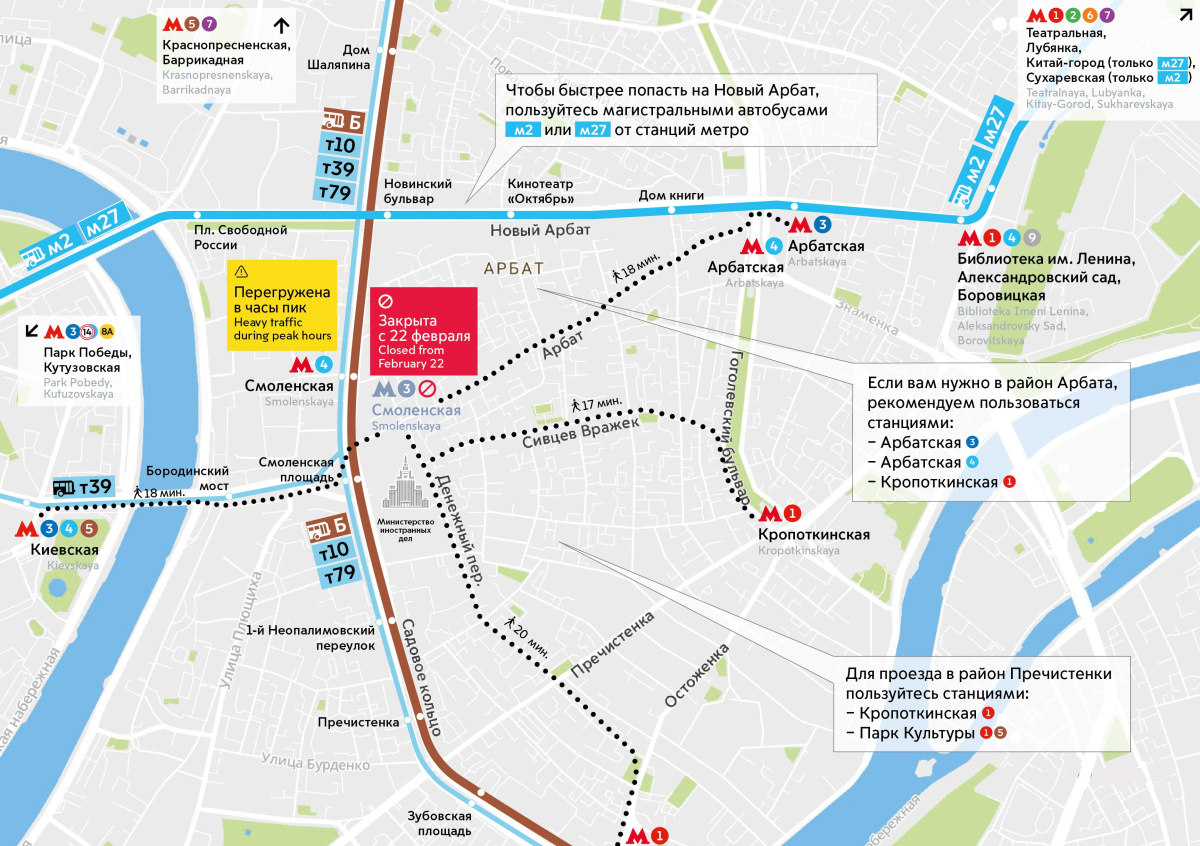 Поскольку станция оборудована всего одним выходом, провести такие масштабные работы без её полного закрытия невозможно. Поезда будут проезжать «Смоленскую» без остановки, но пассажиры смогут пользоваться одноимённой станцией Филёвской линии, сообщает администрация метрополитена.