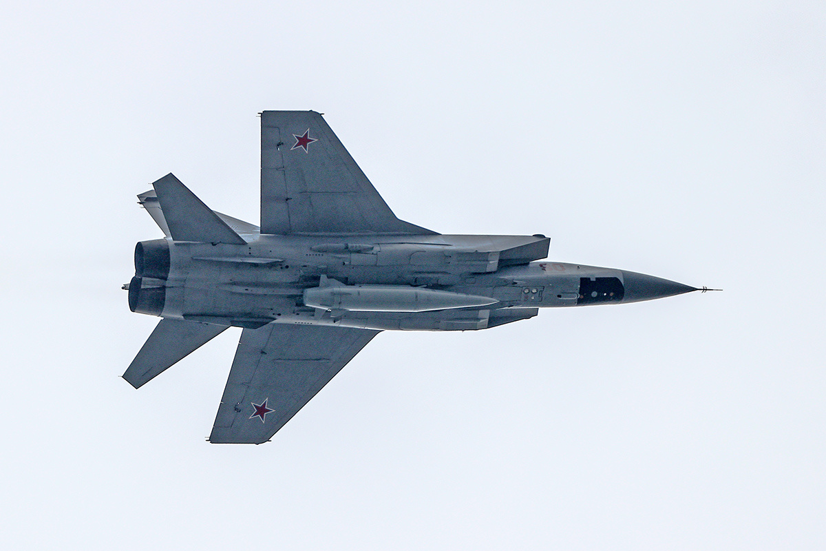 Истребитель-перехватчик МиГ-31К с гиперзвуковым авиационным ракетным комплексом «Кинжал»