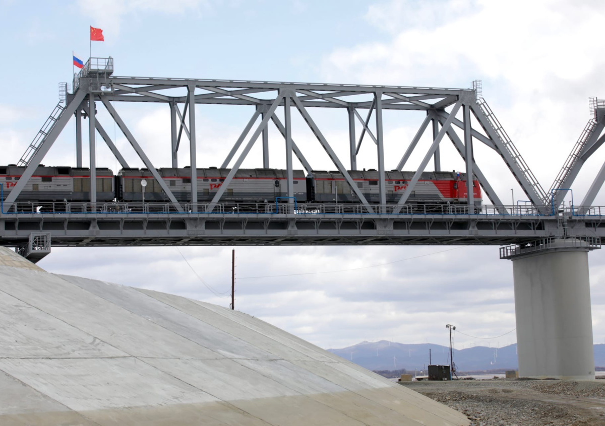 Первый в России трансграничный железнодорожный мост через реку Амур в Китай по маршруту Нижнеленинское — Тунцзян открыли в Еврейской автономной области 27 апреля. В церемонии открытия участвовал вице-премьер — полпред президента в Дальневосточном федеральном округе Юрий Трутнев.