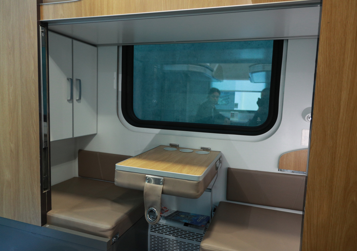 По информации РБК, первый вариант практически не отличается от существующих вагонов. В них добавлены раздвижные перегородки, а также у пассажиров боковушек могут появиться индивидуальные столики и ящики для багажа.