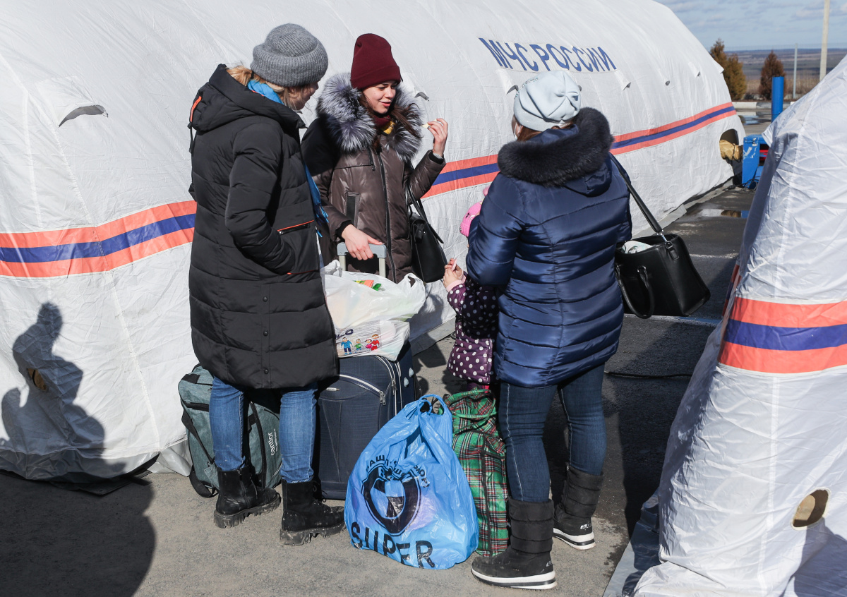 По данным МЧС, по состоянию на 21 февраля границу с Россией пересекли более 60 тысяч вынужденных переселенцев из Донбасса.