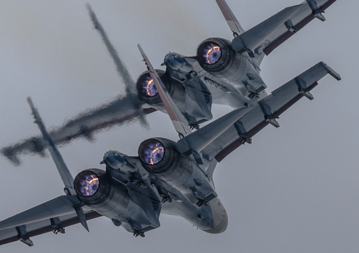 В Су-35С использованы технологии истребителей пятого поколения. Он может летать и воевать в условиях, когда «классические» истребители поколения «4» и «4+» не могут эффективно вести боевые действия. Самолет Су-35С позволяет творить в небе уникальные фигуры высшего пилотажа благодаря двигателям с управляемым вектором тяги, — говорится в сообщении.