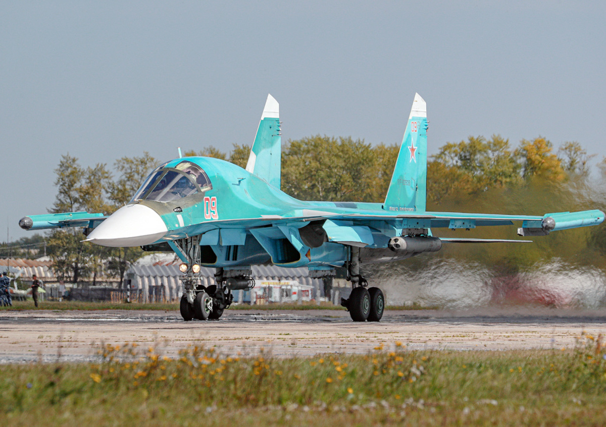 Уточняется, что бомбардировщики предназначены для поражения целей в воздухе, на земле и воде. Кроме того, Су-34 способны работать днем и ночью в любых метеорологических условиях. Помимо этого, самолеты оснащены неуправляемыми и управляемыми авиационными средствами поражения.
