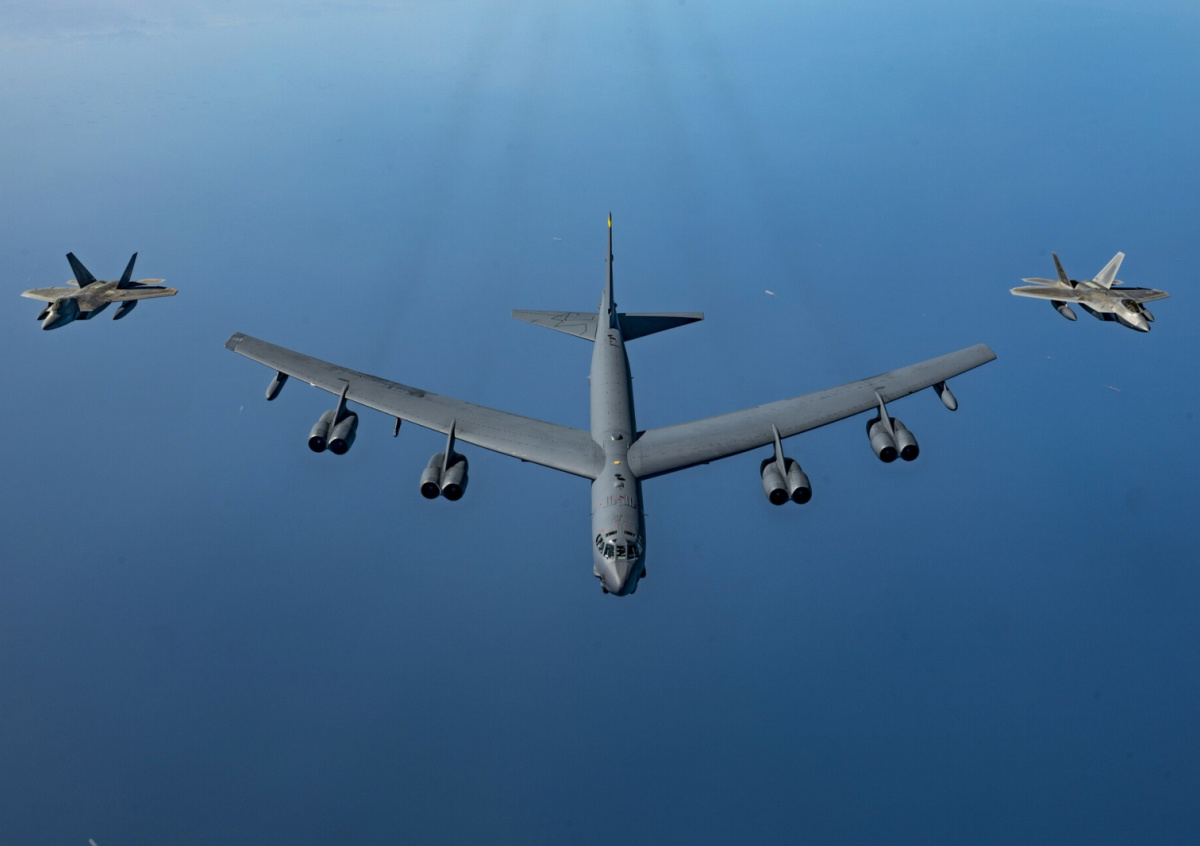 F-22 Raptors летят рядом с B-52H F-22 Raptors летят рядом с B-52H Фото: US Army
