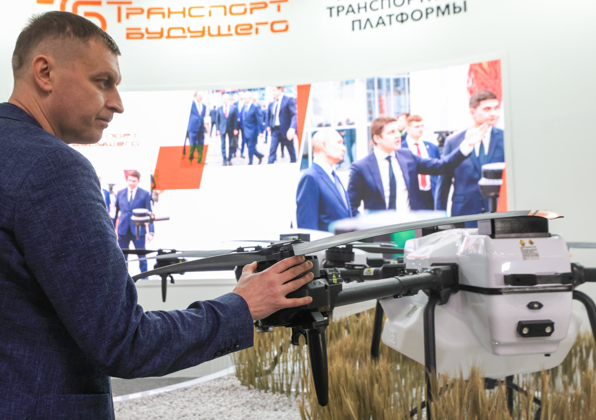 Особое внимание глав российских ведомств на выставке привлек сельскохозяйственный беспилотник С-80 от компании «Транспорт будущего». На стенде был представлен вариант в белом цвете с обтекаемым корпусом из композитных материалов и с черными складными пропеллерами. Главный конструктор предприятия Павел Корольков рассказал NEWS.ru, что это первый сертифицированный серийный агродрон в России. По его словам, С-80 уже запущен в производство, в то время как его конкуренты лишь прошли сертификацию в единичном экземпляре.