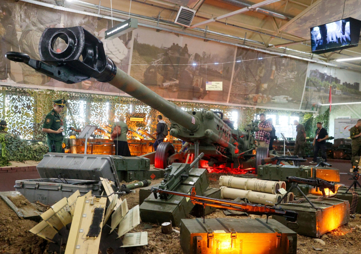 Дивизионная пушка М777 на выставке трофейной техники из зоны СВО