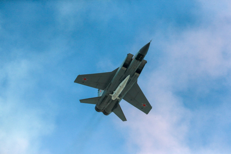 Истребитель-перехватчик МиГ-31К с гиперзвуковыми ракетами «Кинжал»