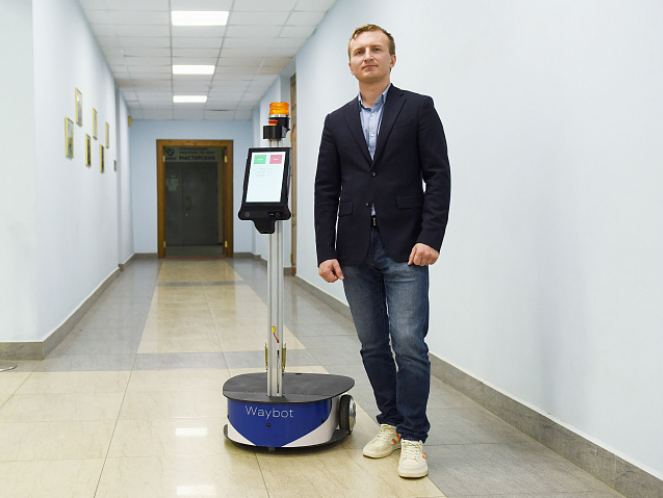 Основатель и директор Waybot Robotics Максим Олейников рассказал, что главная цель компании — создавать сервисных роботов, способных заменить человека на самых разных работах. При этом в компании не только создают роботов, но и отлаживают и обслуживают их у заказчиков. Оплату компания получает только за время фактической работы WayBot, без простоев и подзарядки.