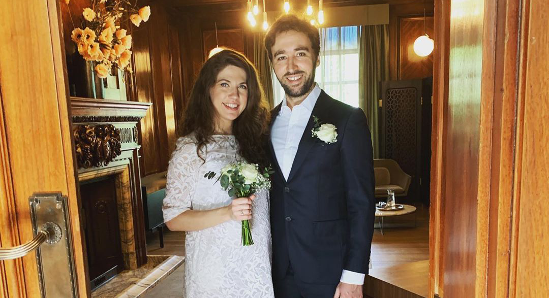 Для торжественной церемонии Мария выбрала простое платье с кружевом, которое подчеркнуло беременность невесты. Она станет матерью уже во второй раз — в июне прошлого года она родила дочь Арию.