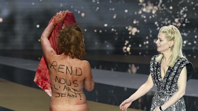 Как сообщалось, 13 марта французская актриса Корина Масьеро во время вручения награды разделась догола в знак протеста против ограничений для сферы культуры, введённых из-за пандемии коронавируса.