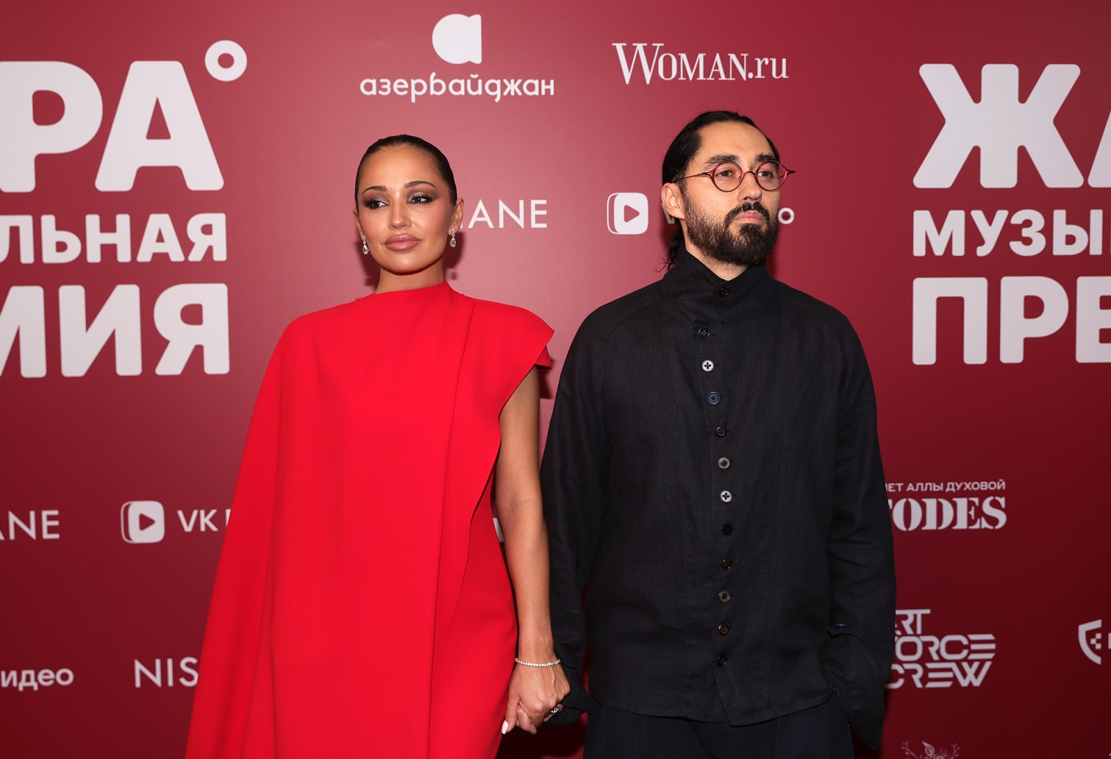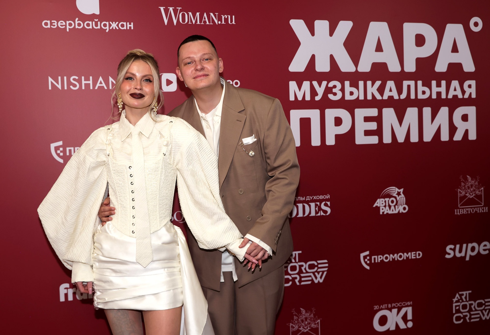 Певец Мот (Матвей Мельников) с супругой Марией во время фотосессии на Музыкальной премии «Жара Music Awards 2026»