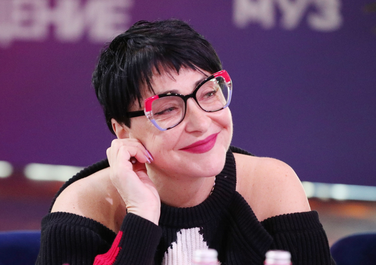 «Я буду очень скромно одета. Я вообще женщина в черном последние 2,5 месяца. Я польщена, с какой честью нас встречают. В последнее время я работаю за еду. Я привыкла стричь кусты. Я не знаю, как у меня получится подстричь микрофон. Обещаю вам, что буду скучна, противна, омерзительна, как и требует премия. Хоть один 60-летний человек должен соответствовать тому, что называется „трендом на 60“. Лавочка, скамеечка, платочек на голове, абсолютная девственность в мозгах. Это я! Я буду единственным скучным пятном. А мои коллеги — самые умные, зажигательные», — высказалась она.