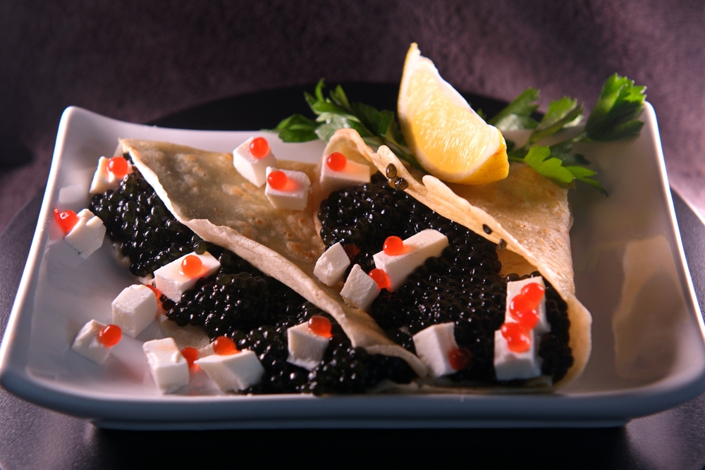 Среди угощений — черная икра, яйца всмятку и огурцы. Также в завтрак входят пирожки и костромские жимчики — подобие драников. Помимо этого, сет дополняется традиционными напитками — литром водки Beluga Gold Line или бутылкой игристого Tete de Cheval Brut.