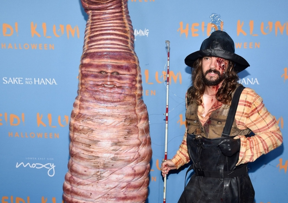 Муж Хайди Клум (Том Каулиц, музыкант) вместе с женой поучаствовал в тематическом появлении на вечеринке. Он пришел туда в костюме рыбака с окровавленным глазом.