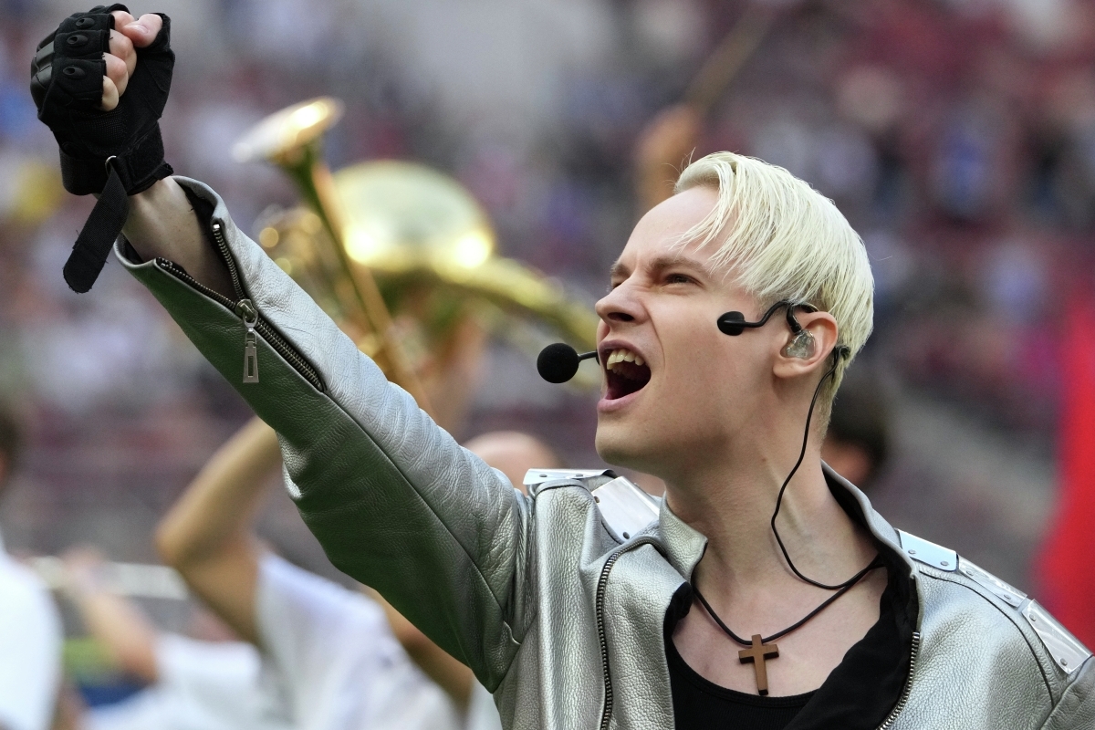 Певец SHAMAN выступает перед началом матча суперфинала FONBET Кубка России по футболу между ФК «Балтика» и ФК «Зенит»