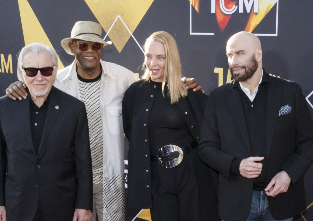 Джон Траволта выглядел безупречно в белой рубашке, черном жилете, подходящем блейзере и синих джинсах. Спустя 30 лет после выхода фильма он обзавелся блестящей лысиной. На ковровой дорожке 70-летнего актера сопровождала 24-летняя дочь Элла Блю Траволта. А Сэмюэл Джексон надел белую футболку с контрастным черным принтом, а также удлиненную рубашку с таким же рисунком по краю. Образ дополнили подходящая шляпа, серые брюки и кроссовки.