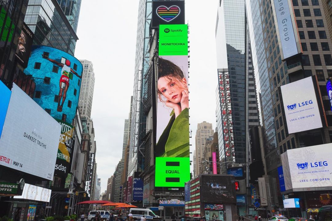 Треки исполнительницы рекомендуют к прослушиванию в рамках кампании Equal музыкального сервиса Spotify, направленной на поддержку женщин в шоу-бизнесе. На новость Монеточка отреагировала фразой «Ваша крошка на Таймс-сквер».