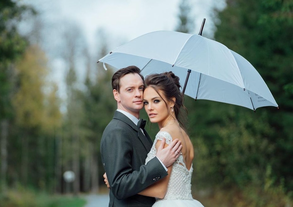 Соколовский в Instagram поделился кадрами со свадебной фотосессии, на которых молодожёны позируют на природе. Супруги сфотографировались на фоне водоёма, на лесной тропе под зонтом, а также позировали с лошадью.