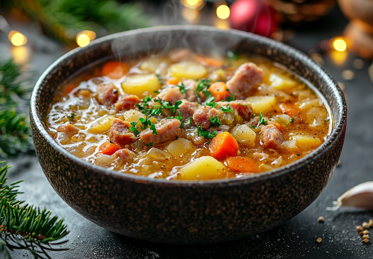 1 января все доедаем, а 2-го варю польский капустняк — идеальный суп: забыла про щи, когда нашла этот рецепт. Насыщенный, ароматный и согревающий суп на основе свиного бульона с квашеной капустой и копченой колбасой. Классическое блюдо, в котором идеально сочетаются кислинка, копчености и пряные ноты.
