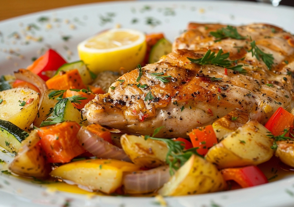 Смешайте овощи с маслом, прованскими травами, солью и перцем. Выложите их на дно формы, сверху — индейку. Запекайте под фольгой полчаса, затем еще 20 минут без нее, чтобы добиться аппетитной корочки. Это блюдо подойдет для любого случая — от семейного ужина до праздничного стола.