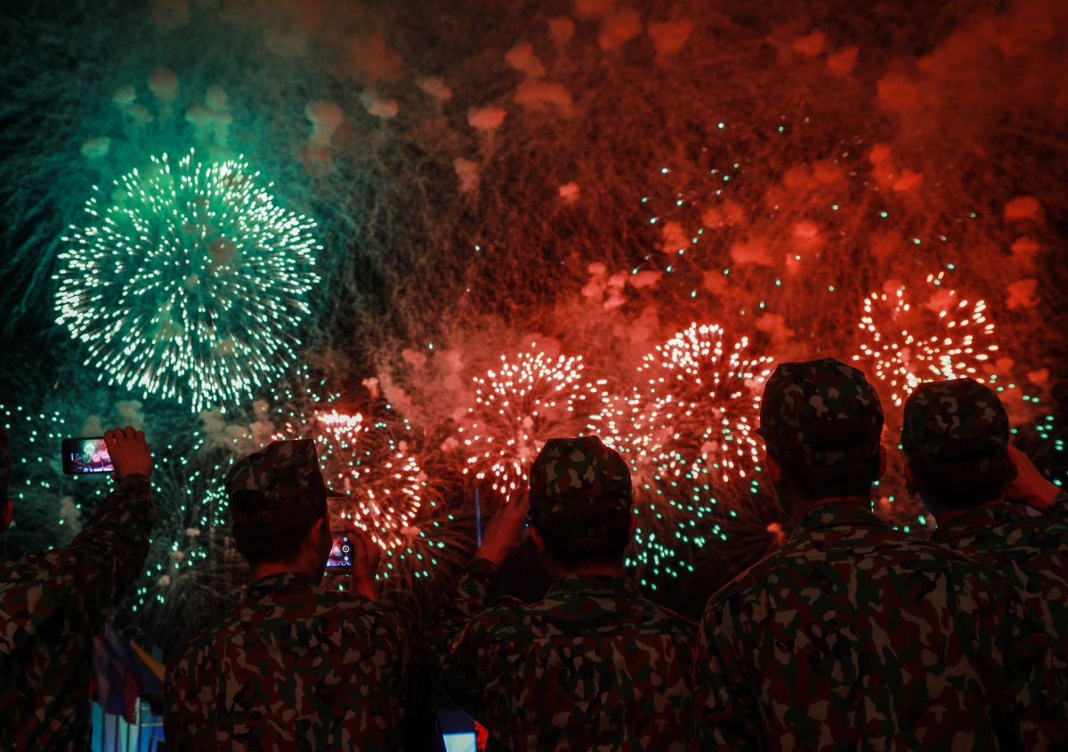Представители ЗВО рассказали, что управление салютом программируется в строгом соответствии со сценарием, а время выстрелов корректируется с точностью до миллисекунд.