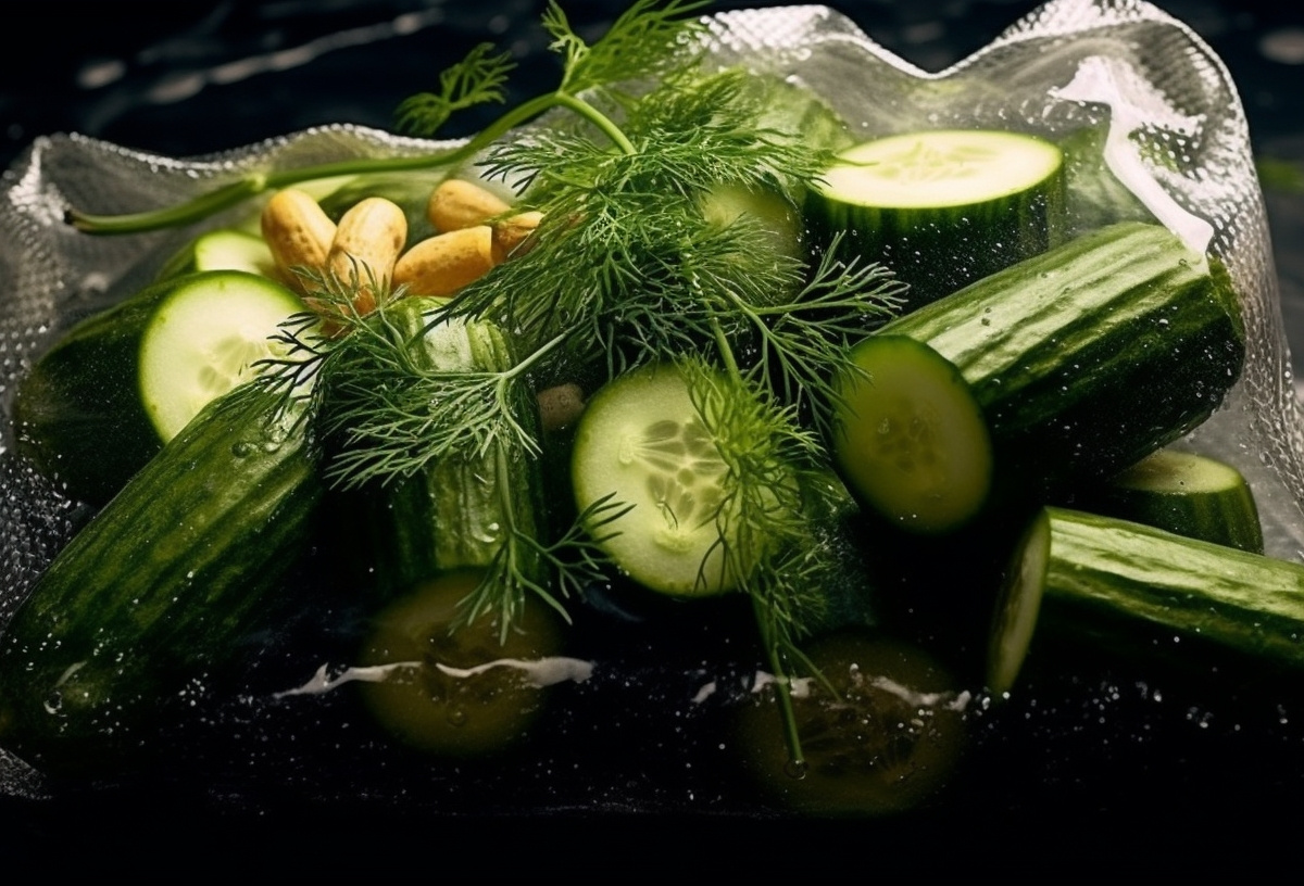 Малосольные огурцы с кабачками в пакете